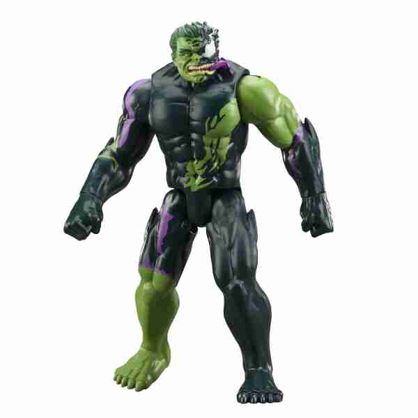The Marvel Avengers VenomVersus Titan Hero Series brings together two iconic heroes – Captain America and Hulk – now with a Venomized twist. This 12-inch (30 cm) action figure set, suitable for ages 4 and up, includes Venomized Captain America and Venomized Hulk, both featuring unique symbiote-inspired designs straight from Marvel Comics. Venomized Captain America comes with his own Venomized shield accessory and a removable Venom mask, completing his fearsome makeover. Each figure features basic articulation (5 to 7 points) for poseable battles and exciting display. The set is packaged in a collectible window box with exclusive Venom styling, making it ideal for both play and display. These figures encourage imaginative play as kids create their own heroic adventures, and the set is compatible with other Avengers toys in the VenomVersus line (figures, vehicles, and playsets sold separately). Officially licensed by Hasbro and Marvel. WARNING: Small parts may be generated. Not for children under 3 years.